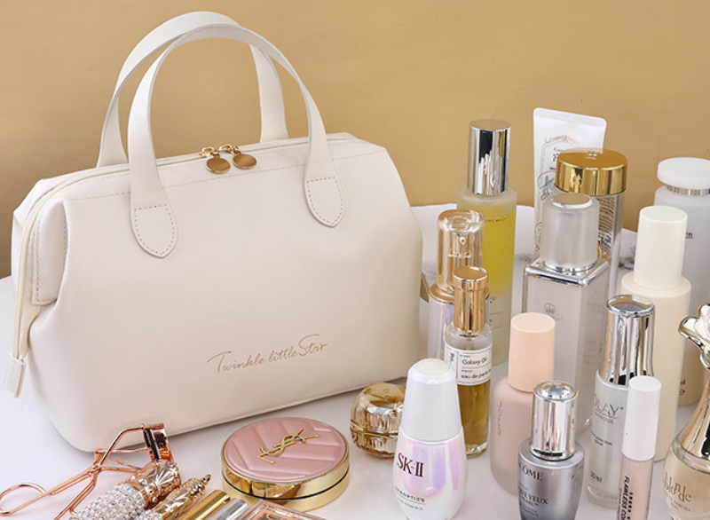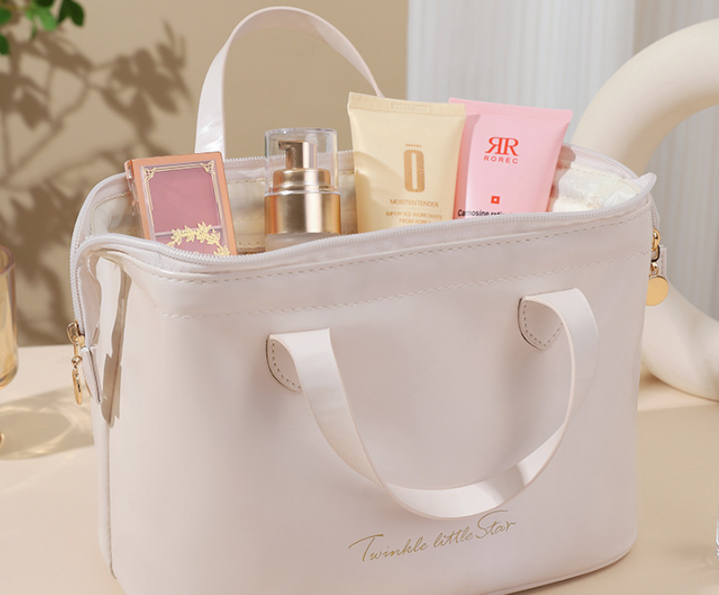 Carry your beauty essentials in enchanting style with this elegant and spacious cosmetic bag. Crafted from luxurious vegan leather, its sophisticated design features a whimsical Twinkle little Star embossment. Perfect for organized travel, a chic addition to your daily vanity, or a thoughtful gift. Experience convenience and charm, all in one beautiful pouch. Perfect for home or travel, it’s a stylish sanctuary for your most cherished items.