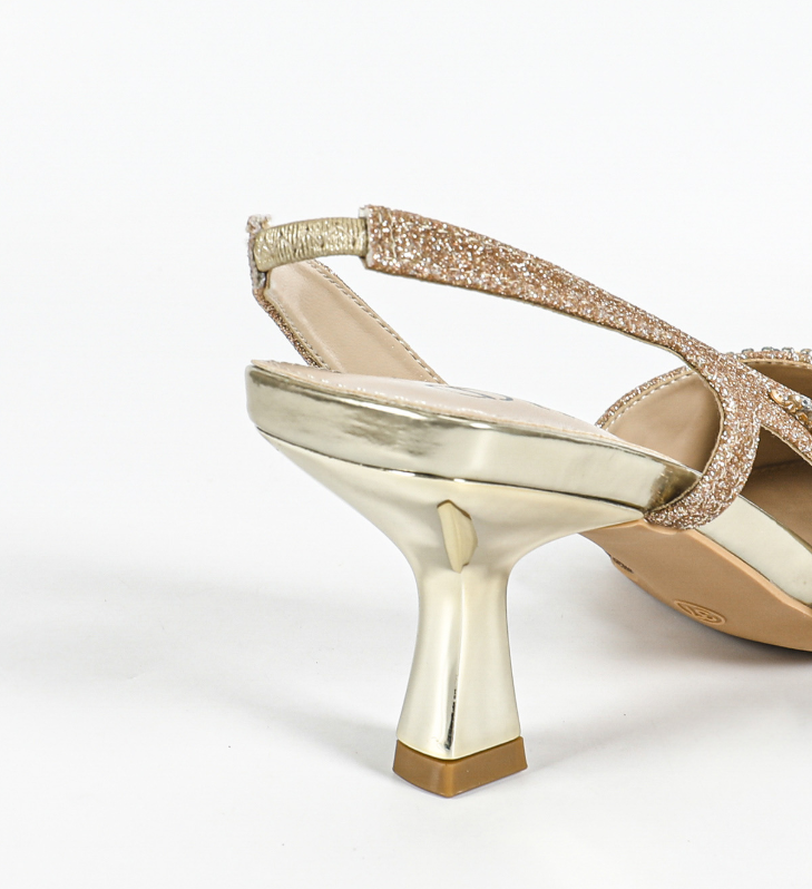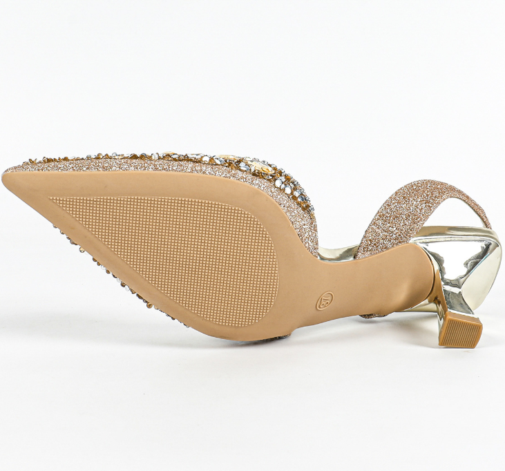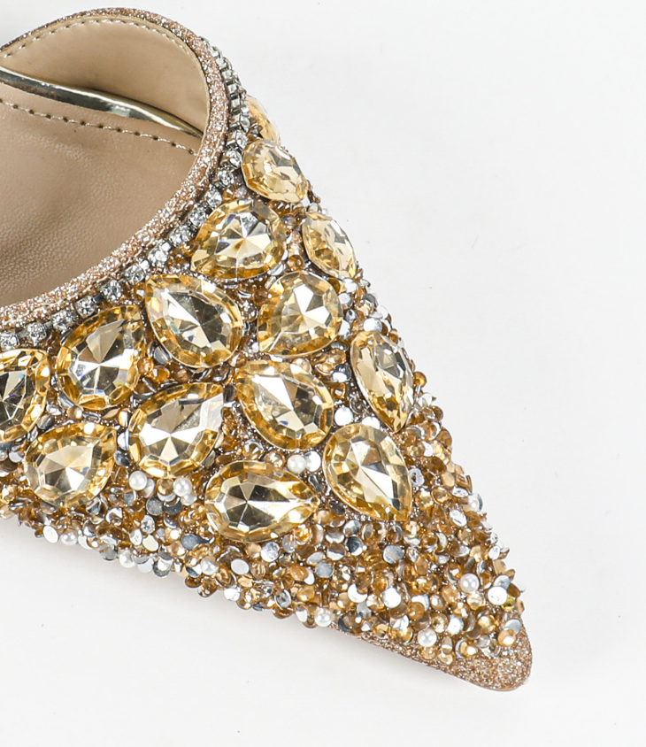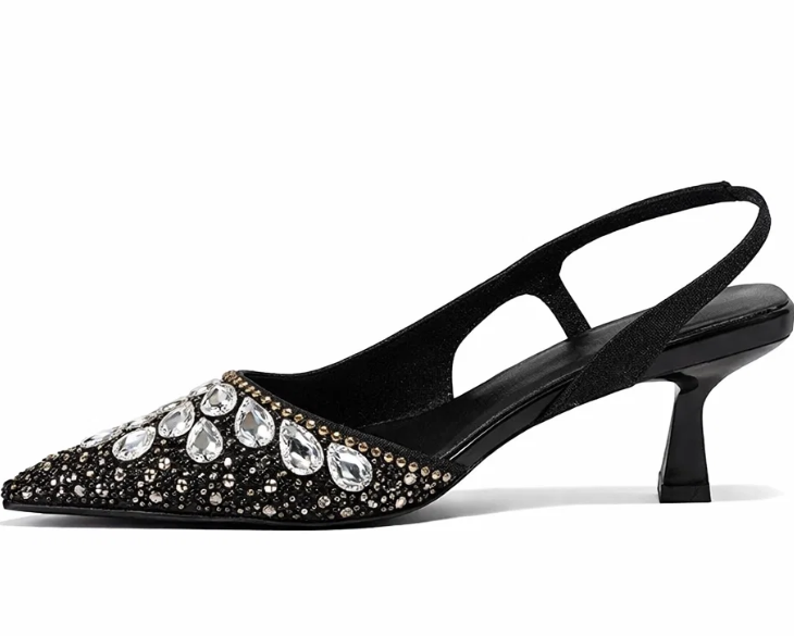 The Crystal Square Heel Pointed Toe Heels feature a sleek pointed-toe design paired with a sparkling crystal heel that adds elegance and visual appeal. The open-back style enhances comfort and gives the heels a modern, fashionable look.