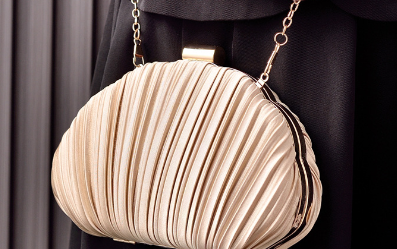 These delightful clutches feature elegant, finely ruched satin in an array of soft, enchanting colors, creating a beautiful fan-like texture. Each bag is framed with subtle gold accents and a classic kiss-lock clasp, offering timeless sophistication. Perfect for adding a vibrant yet refined touch to any evening ensemble, these clutches are versatile accessories for weddings, proms, or special celebrations.