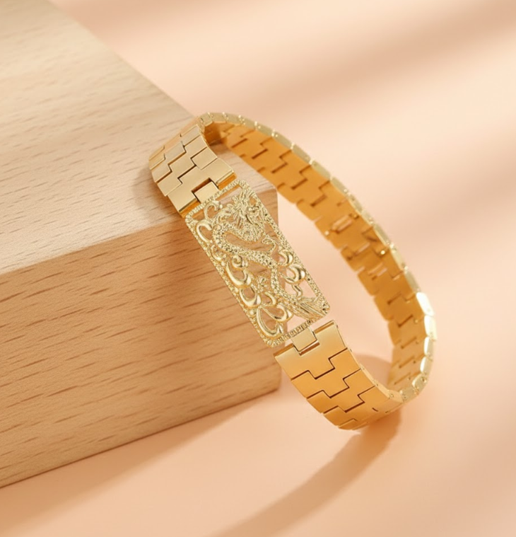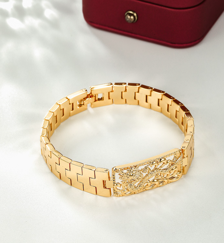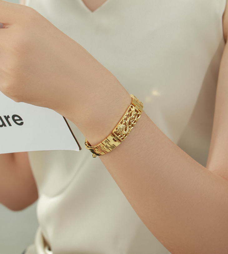 The Hollow Dragon Engraved Gold Bracelet exudes a bold and domineering style, perfect for both men and women who appreciate statement accessories. Crafted from high-quality alloy and electroplated in gold, it features intricate hollow dragon engravings that highlight strength and elegance. Its square design adds a modern, edgy touch, while the durable construction ensures long-lasting wear. Stylish, fierce, and luxurious—this bracelet is an ideal choice for those who want a standout, high-end accessory with a powerful aesthetic.