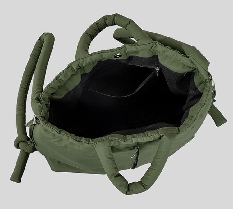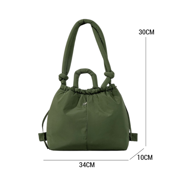 Stay effortlessly stylish and organized with this shoulder bag crafted from soft, padded nylon for everyday comfort. Featuring a spacious main compartment with a secure drawstring closure, this bag offers plenty of room for all your essentials. Its versatile dual-use design lets you wear it as a classic shoulder bag or tote, making it perfect for travel, shopping, or daily commutes. Lightweight, durable, and fashion-forward — this large capacity shoulder bag is your ideal grab-and-go companion.