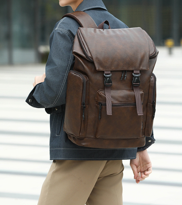 The Men’s Retro Leather Large Capacity Backpack is designed with a fashionable retro look and practical outdoor functionality. Made with leather material, this backpack offers a high-quality appearance while providing ample storage space for daily essentials.