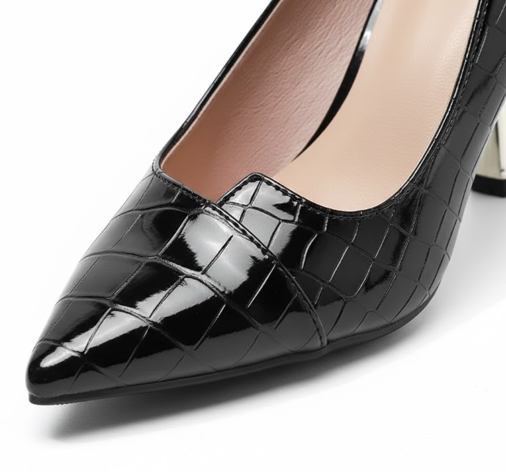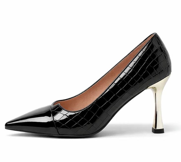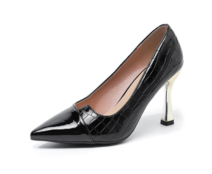 The Pointed Toe Patent Leather Stiletto Heels feature a sharp pointed-toe design with a glossy patent leather finish, giving a refined and elegant high-heel look. The stiletto heel adds height and sophistication, while the low-cut style enhances a sleek silhouette.
