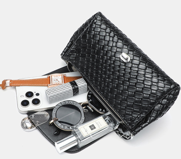 Solid Woven Shoulder Tote Bag