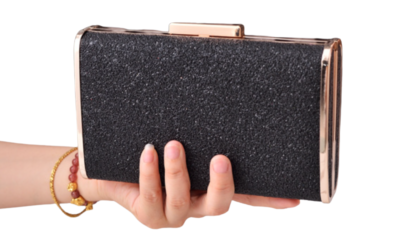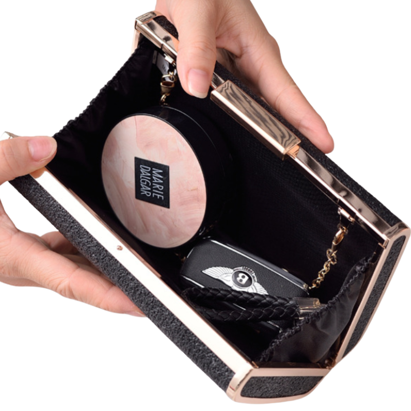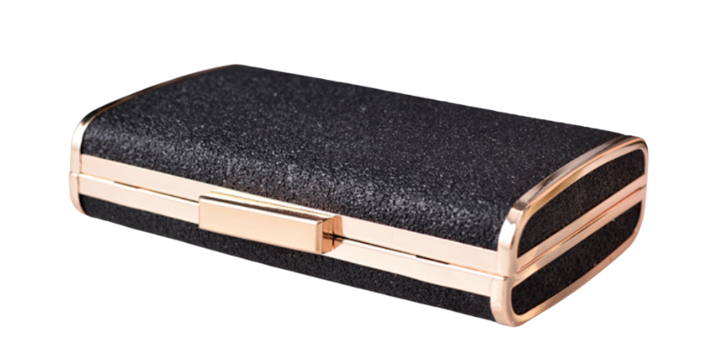 Designed to capture the light, this hard case evening bag is adorned with sparkling emerald glitter and framed by elegant gold-tone hardware, exuding a luxurious and sophisticated appeal. The secure clasp closure ensures your essentials are kept safe, while its compact yet functional interior is perfectly sized for your phone, lipstick, cards, and keys. Ideal for weddings, parties, galas, or any event where you want to add a touch of sparkle and glamour to your ensemble.